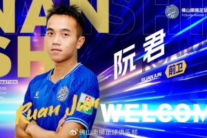 欢迎回家,阮君!期待你再次穿上佛山南狮战袍,在绿茵场上续写属于你的传奇。俱乐部和球迷将与你并肩作战,共同为佛山足球的荣耀而战!